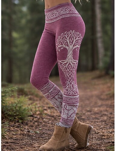 Femmes Leggings Vacances ancien Style Ethnique Longueur complète Taille haute Graphique Abstrait Impression 3D Confort Séchage Rapide Respirabilité Élastique Quotidien Maison Extérieur Rose violet