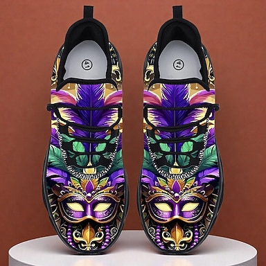 Baskets inspirées de Mardi Gras pour hommes avec design coloré de masque et plumes – Chaussures amusantes et audacieuses pour le carnaval les célébrations et les festivals