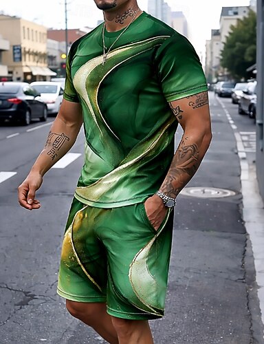 Homme Géométrique Ligne 2 pièces Ensembles de tees Hauts d'été Manche Courte Pantalon court Col ras du cou Occasionnel Tendance Quotidien Vacances Impression 3D Été Bleu Violet Vert