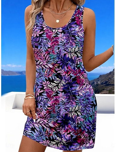 Robe mini femme Robe petite Robe d'été Robe shift Robe débardeur Mode active Tropicale Extérieur Vacances Congés Coupe régulière Florale Bohème Sans manches Col U Rose Bleu Vert Été Printemps