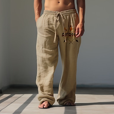 Homme Pantalons en Lin Pantalons Pantalon d'été Pantalons Amples Pantalons de Plage Cordon de serrage Taille Élastique Imprimé Géométrique Uni Confort Respirant Longueur complète Quotidien Plage Fête