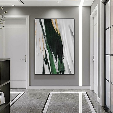 peinture à l'huile à la main peint à la main art mural moderne vert noir blanc abstrait décoration de la maison décor toile roulée pas de cadre non étiré