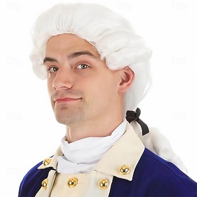 Perruque de style colonial pour hommes et femmes, cheveux synthétiques ondulés et résistants à la chaleur, parfaits pour les déguisements de soirée.