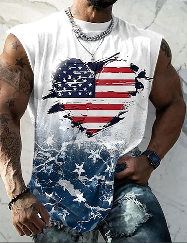 Homme Drapeau Américain Sous-Vêtements Sans manches T-shirt Impression 3D Col ras du cou Chemise Punk Hardcore street style Quotidien Rue Blanc 1 Blanc 2 Blanc 3 Printemps & Été Vêtement Tenue S M L