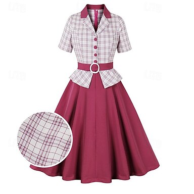 Ligne A Longueur cheville Robes de Cocktail Robe de Soirée Robes de soirée Élégant ancien Années 1950 Manche Courte Col Illusion Halloween robe demoiselle d honneur Invité de mariage d'automne