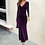 Femmes Robe Midi Robe de Soirée Robe de Cocktail Robe en Satin Élégant Moderne Soirée Coupe régulière Uni manche longue Col en V Noir Vin Automne Hiver