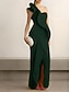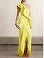 Fourreau / Colonne Asymétrique Robes de Cocktail Robes de Bal Robe de Soirée Tenue de soirée Élégant ancien Sans manches Une Épaule Formel Mariage Crêpe Extensible avec Volants