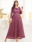 Ligne A Longueur cheville Robe de Soirée Robe de Cocktail Robe à jupe Manche 3/4 Bijoux Élégant Grande taille robe demoiselle d honneur Chiffon Dentelle Robe de Mère de Mariée avec Froncé Paillettes