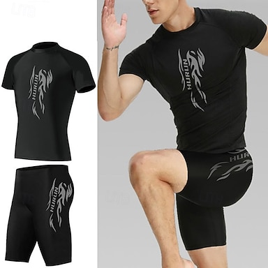 Homme Maillot anti-UV 2 pièces Chemise de surf Short de bain Protection Solaire UV Séchage Rapide Manche Courte Maillot de Bain Plage Sports Nautiques Natation Graphique Été
