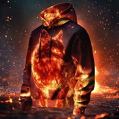 Homme Loup Flamme Sweats à capuche Sweatshirt Mode Frais Quotidien manche longue Col ras du cou Soirée Fête Vêtements de rue Rouge Cordon de serrage Automne Hiver Designer S M L XL XXL XXXL