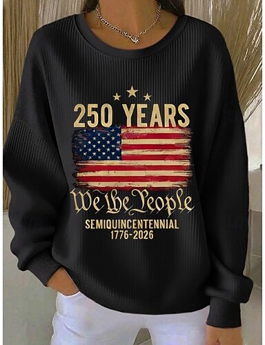 Jour de l'Indépendance Anniversaire Américain Patriote Pullover Graphique Lettre Chaud Classique Décontracté Manches Longues Col Roulé Hauts Décontractés Maison Rue Imprimé Noir Blanc Rouge Printemps