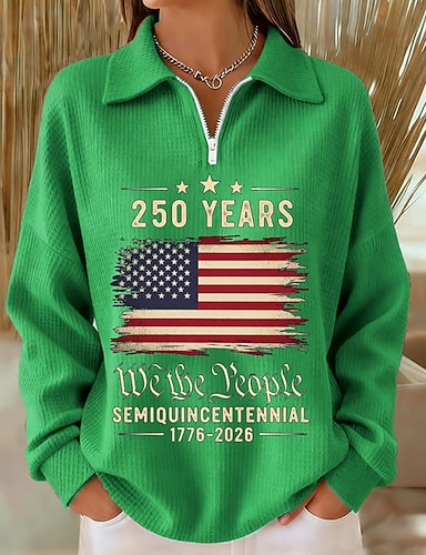 Jour de l'Indépendance Anniversaire Américain Patriote Sweat-shirt Texturé à Col Roulé Femme Graphique Lettre Décontracté Manches Longues Col Ronde Décontracté Maison Rue Bleu Noir Blanc Rouge