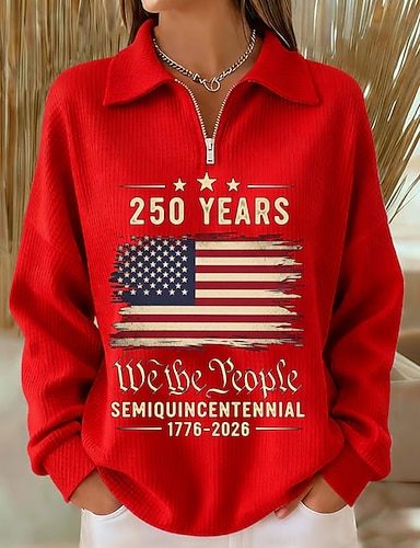 Jour de l'Indépendance Anniversaire Américain Patriote Sweat-shirt Pullover Femme Graphique Décontracté Manches Longues Col Roulé Hauts Décontractés Rue Imprimé Quotidien Noir Blanc Rouge Printemps