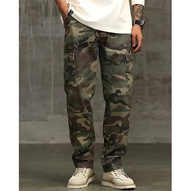 Homme Pantalon Cargo Pantalon tactique Pantalon Boutons Multi poche Jambe droite Camouflage Vestimentaire Extérieur du quotidien Camping et randonnée Mode Classique Noir Vert Véronèse