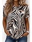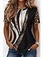 Femmes T-shirt Imprimé Graphique Léopard Géométrique ancien Élégant Occasionnel Manche Courte Col en V Hauts Réguliers Occasionnel Quotidien Bleu Jaune Marron Été Printemps