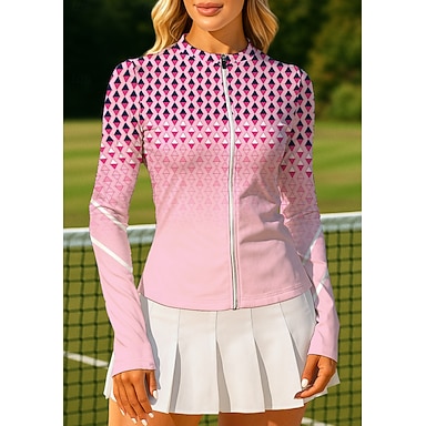 Femmes Géométrique Dégradé Hauts T-shirt de sport Chemise de tennis Haut de tennis manche longue Fermeture éclair Floral UPF50+ Résistant aux UV Haute élasticité Évacuation de l'Humidité Respirant