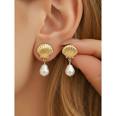 Boucles d'oreilles en alliage pour femme, ornées de fausses perles, d'étoiles de mer et de coquillages, style bohème, parfaites pour les vacances d'été et le quotidien.