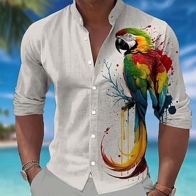 Homme Animal Oiseau Perroquet Chemise Chemises hawaïennes Chemise à col montant manche longue Hawaïen Occasionnel Vacances Printemps Automne Col mandarin Band Collar Impression 3D Chemises boutonnées