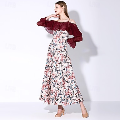 Danse de Salon Robe Imprimé floral Plis Épissage Femmes Soirée Entraînement Performance manche longue Spandex Polyester