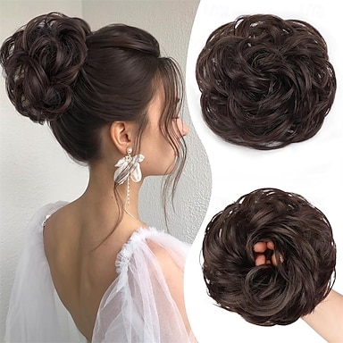 Chignon décoiffé, postiche, chignon bouclé pour femme, chouchou, faux chignon synthétique, extensions de cheveux, postiches pour le quotidien