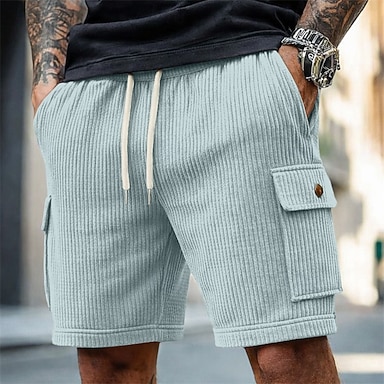 Homme Shorts Short décontracté Short en velours côtelé Avec Poches Taille Élastique Texturé Uni Confort Respirant Longueur Genou Occasionnel Extérieur Plage Vacances Mode Noir Blanche Non Elastique