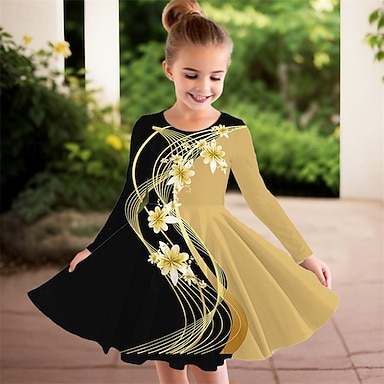 FILLE 3D Graphique Fleur Robe manche longue Été Printemps Vacances Quotidien Fête Princesse Beau Doux Enfants 4-12 ans Robe Décontractée Robe trapèze Mi-long Coupe régulière