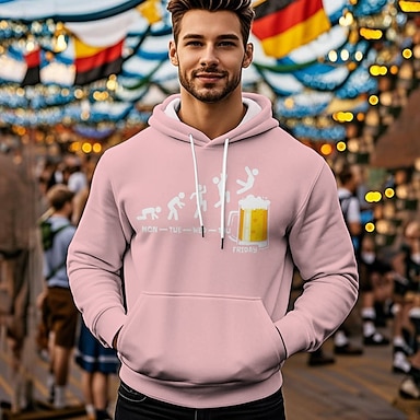 Sweat à capuche Imprimé Occasionnel Bavarois Manche Évêque Poche Avant Graphique pour Homme Adulte Gaufrage à chaud pour Carnaval Oktoberfest Vacances Soirée