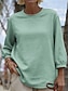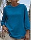 Femmes Chemisier Faux coton lin Couleur Unie Quotidien Élégant Basique manche longue Col ras du cou Hauts Réguliers Quotidien Bleu Noir Vert Gris Printemps Automne