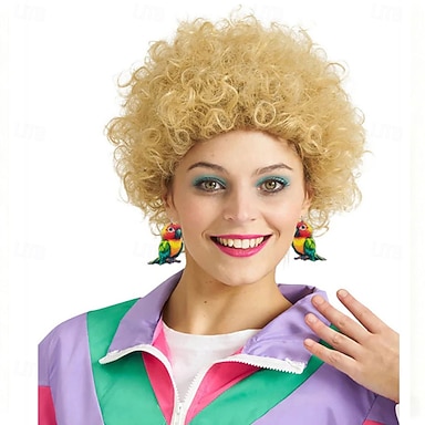 Perruque blonde platine bouclée volumineuse pour femme, déguisement de star de la pop des années 80