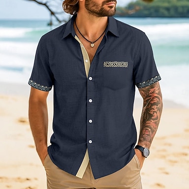 Homme Chemise en lin Chemise d'été Chemise de Plage Manche Courte Mode Décontractée Vacances Fête Tenue de plage Été Printemps Col chemises à col Une poche avant Marine foncé Bleu Vert Gris