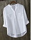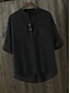 Femmes Chemisier Faux coton lin Froncé Patchwork Avec Poches Uni Élégant Vacances ancien Manche 3/4 Col ras du cou Hauts Longs Quotidien Fête Sortir Noir Kaki Été Printemps