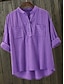 Homme Chemise Chemise Lin Chemise à col officier Chemise boutonnée Plein Vacances Casual Quotidien Violet Kaki Gris manche longue Col Mao Eté Printemps & Automne Vêtement Tenue