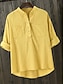 Homme Chemise Chemise en lin Chemise popover Chemise d'été Tenue de plage Chemise à col officier Uni Vacances Croisière Rose Claire Bleu Vert Véronèse manche longue Henley Printemps & Été Vêtement
