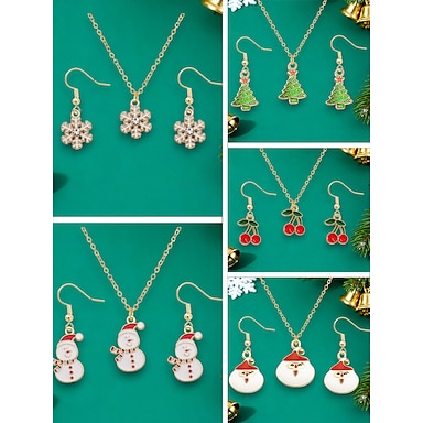 Ensemble de bijoux de Noël 5 pièces pour femme, joli flocon de neige, arbre, bonhomme de neige, cerise &ensembles collier et boucles d'oreilles Père Noël pour fête de fin d'année &cadeaux de fête