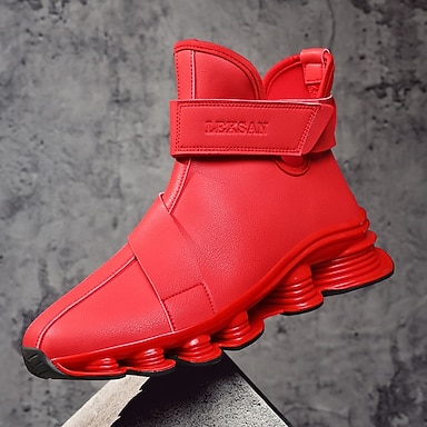 Chaussures de sport rouges pour hommes – élégantes et confortables avec tige en mesh et coussin d'air, parfaites pour les fêtes décontractées et les soirées de Noël.