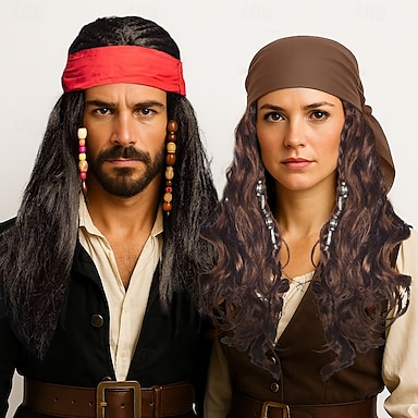 Perruque pour homme, longue, bouclée et ondulée, noire, résistante à la chaleur, en fibres synthétiques, idéale pour un usage quotidien, les fêtes et les costumes de cosplay (noire)