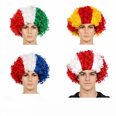 Perruque afro tricolore à rayures - cheveux bouclés aux couleurs du drapeau national pour les fans de sport