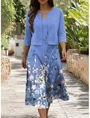 Robe de bal A-Line longueur genoux robe de fête robe de soirée robe de mère de la mariée manches 3/4 décolleté en V élégante vintage fête avec perles