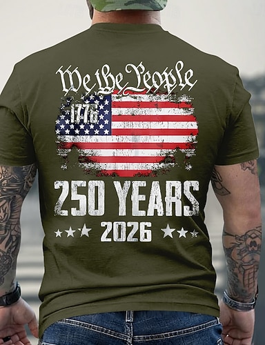 4 juillet 2026 250e jour commémoratif T-shirt à manches courtes col rond décontracté pour homme imprimé 3D Patriotic Patriot Vétéran quotidien