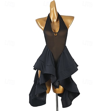 Danse salsa latine Robe Couleur unie Épissage Femmes Performance Entraînement Sans manches Chinlon Maille