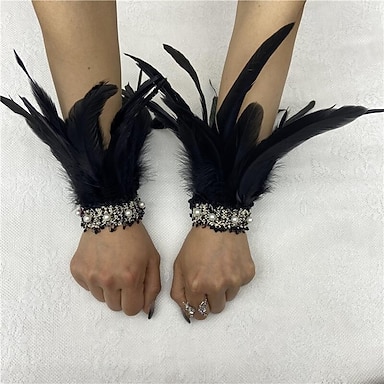 Carnaval 2026 Accessoires de Carnaval de Rio Samba Poignet en Plumes Noires avec Dentelle en Perles 1 Paire de Bracelets en Plumes Naturelles Costume de Performance Festival Brésilien