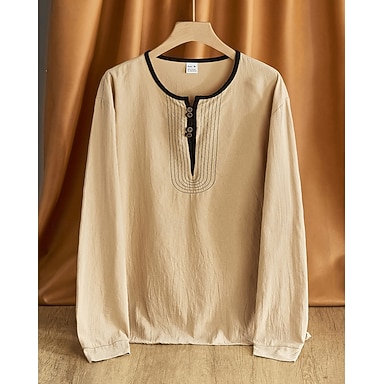 Homme Chemise Chemise en lin Chemise popover Chemise Décontractée Chemise en coton Uni Occasionnel Vêtements de rue Blanche Vin bleu marine Marron manche longue Col montant Été Printemps & Automne