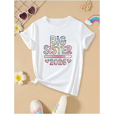 Fille 3D Graphique Lettre T-shirt Manche Courte Impression 3D Été Printemps Sports Mode Streetwear Enfants 4-12 ans Col Rond Occasionnel Quotidien Extérieur Coupe régulière