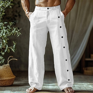 Homme Pantalons Pantalon d'été Pantalons de Plage Avec Poches Bouton latéral Uni Confort Respirant Vacances Quotidien Fête Hawaïen Boho Noir Blanche