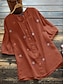 Femmes Faux coton lin Broderie Couleur Unie Basique Occasionnel Manche 3/4 Col en V Hauts Réguliers Quotidien Bleu bleu marine Violet Orange Abricot Été