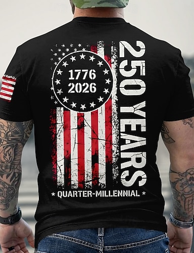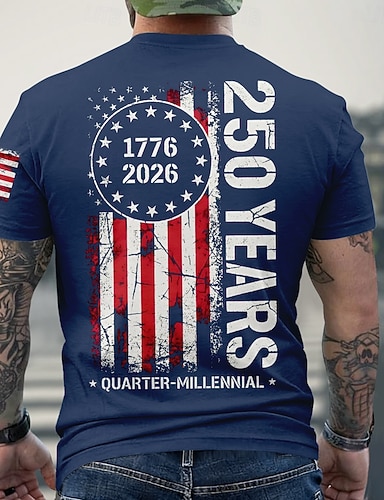 4 juillet 2026 250e Jour du Souvenir T-shirt à manches courtes col rond 3D imprimé drapeau américain vétéran pour homme rue quotidienne