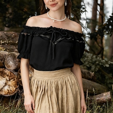 Rétro Vintage Médiéval Renaissance Blouse / Chemise Manches bouffantes Viking Chevalier Celtique Elfe Couleur Unie Déguisement Femmes Celtique Fantaisie Mascarade Vacances Décontracté Quotidien LARP