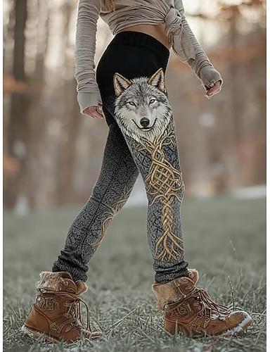 Femmes Leggings Vacances ancien Style Ethnique Longueur complète Taille haute Graphique Impression 3D Confort Séchage Rapide Respirabilité Élastique Quotidien Maison Vacances Gris foncé Été Printemps