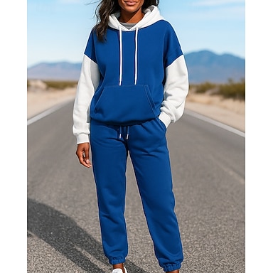 Femmes Survêtement 2 pièces Sweat à capuche Lounge Ensembles de survêtements Bouffant avec poche Bloc de Couleur Ensemble Vêtements Automne Noir Bleu Randonnée Métier Extérieur manche longue Sport