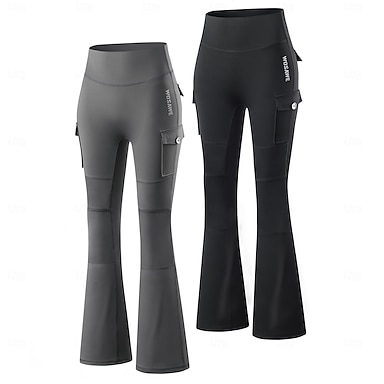 Femmes Pantalon de yoga Pantalon droit avec poches Salle de sport Athlétique Sportif Bas Couleur Unie Noir Blanche Vert Spandex Des sports Tenues de Sport Mince